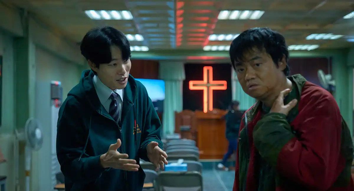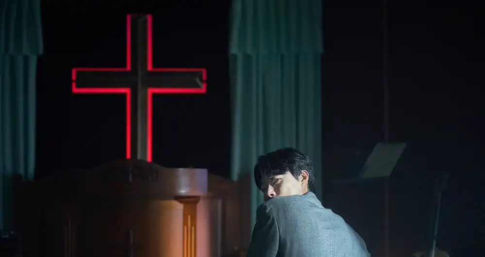 영화 《계시록》의 정점은, 목사 성민찬이 예배당 한가운데서 “신께서 말씀하셨습니다”라고 외치며, 실종 사건의 범인을 단죄하자고 선포하는 장면이다. 빛도 거의 닿지 않는 어두운 예배당, 떨리는 목소리, 두 눈에 가득 찬 확신과 광기. 그 순간은 마치 신비롭고 숭고한 메시지처럼 보이기도 하고, 동시에 섬뜩하고 위험한 광기로도 느껴진다.